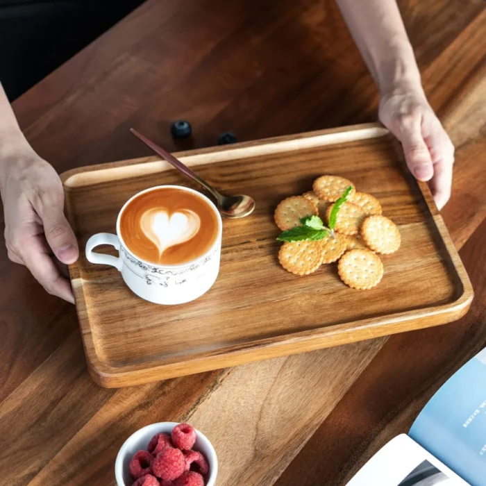 Perfect for serving breakfast in bed, carrying drinks, or organizing items on your coffee table or countertop, it’s both decorative and practical. Built-in handles make it easy to carry, while raised edges help prevent spills and keep everything in place.